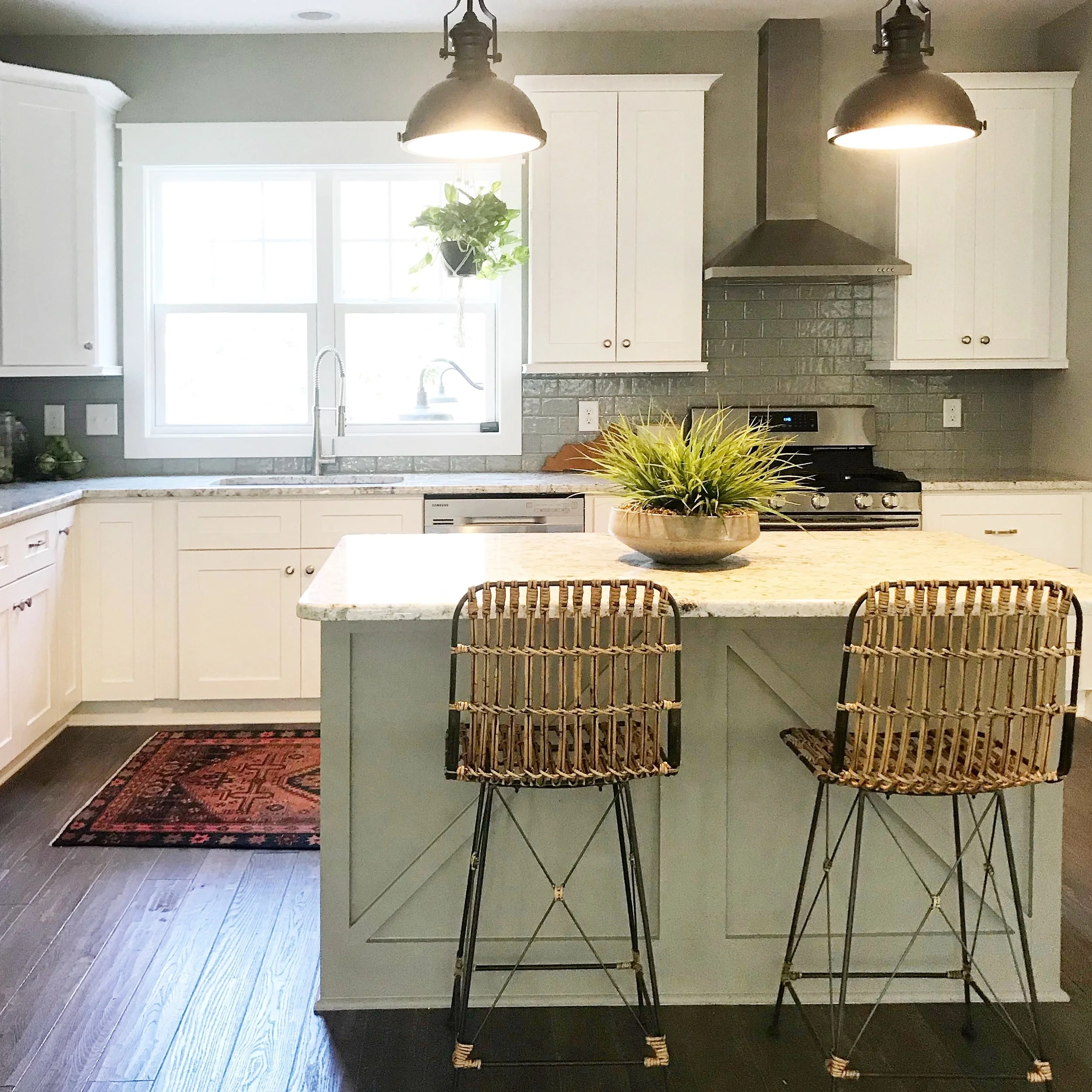 Can’t go wrong with a hanging plant and a vintage rug in the kitchen.