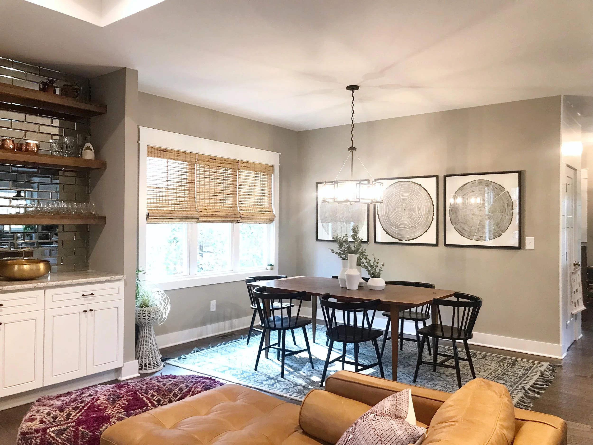 The coloring of the living and dining areas was inspired by the clients’ artwork from Budapest.